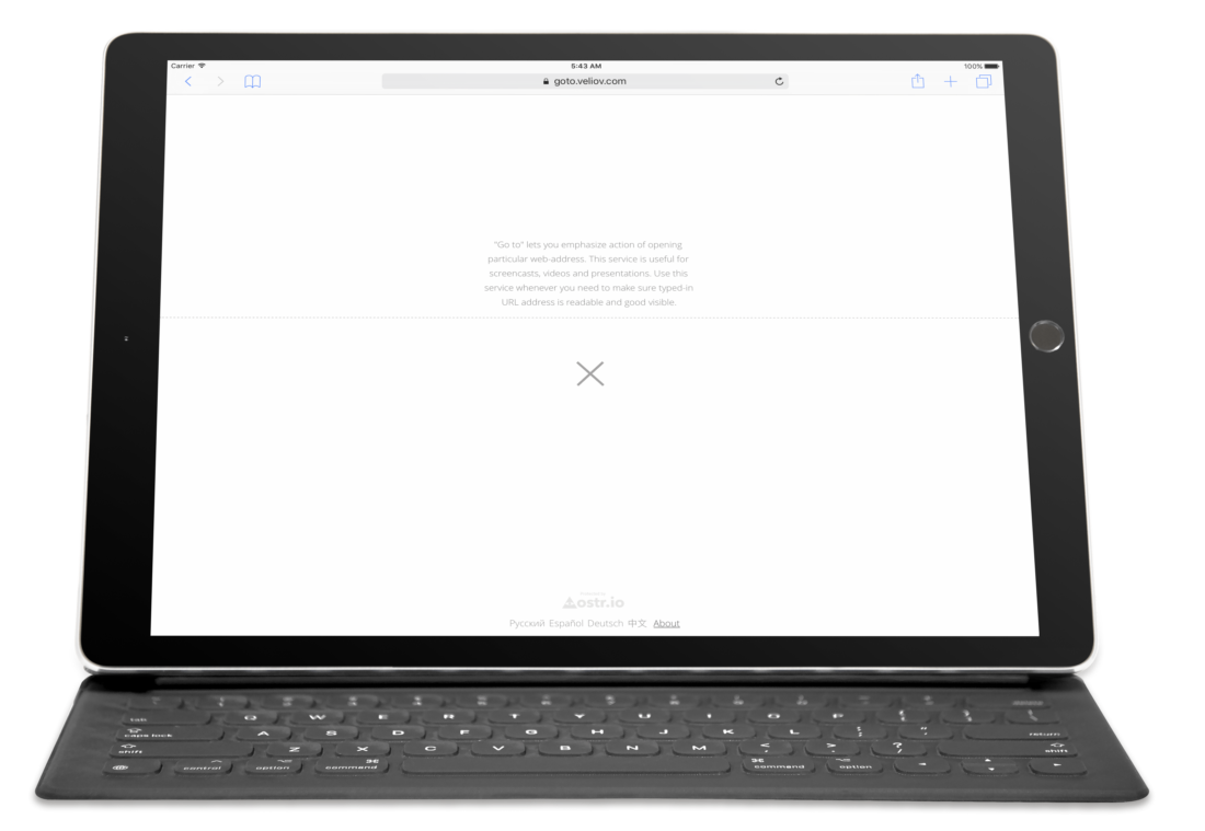 Create very simple website with large and emphasized input, right in the middle of the page, where a web address can be typed-in. After hitting Enter key user will be redirected to the desired address. To create persistent "redirectable" URL use ?url= get parameter, like: goto.veliov.com/en?url=uniq.site.